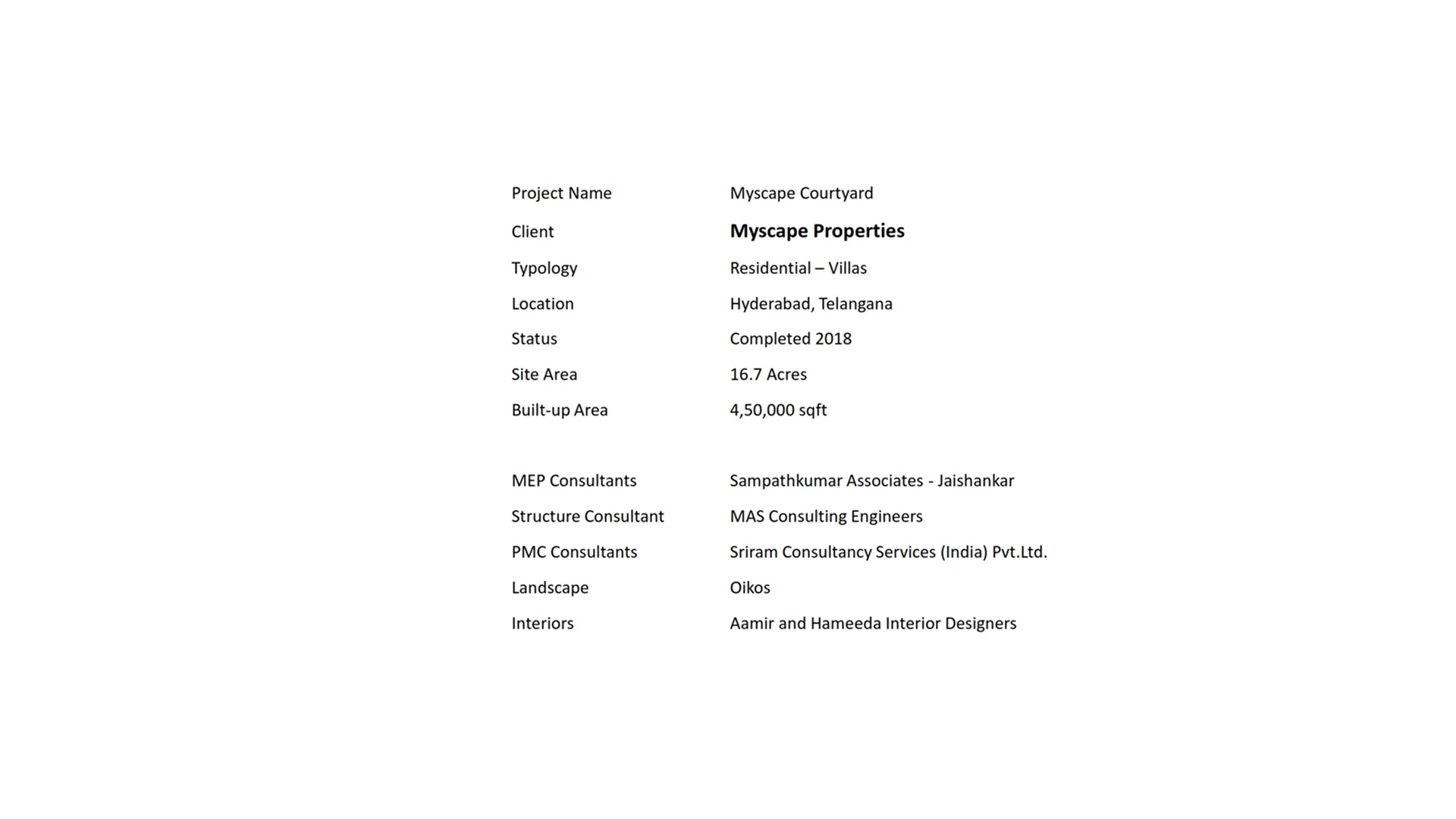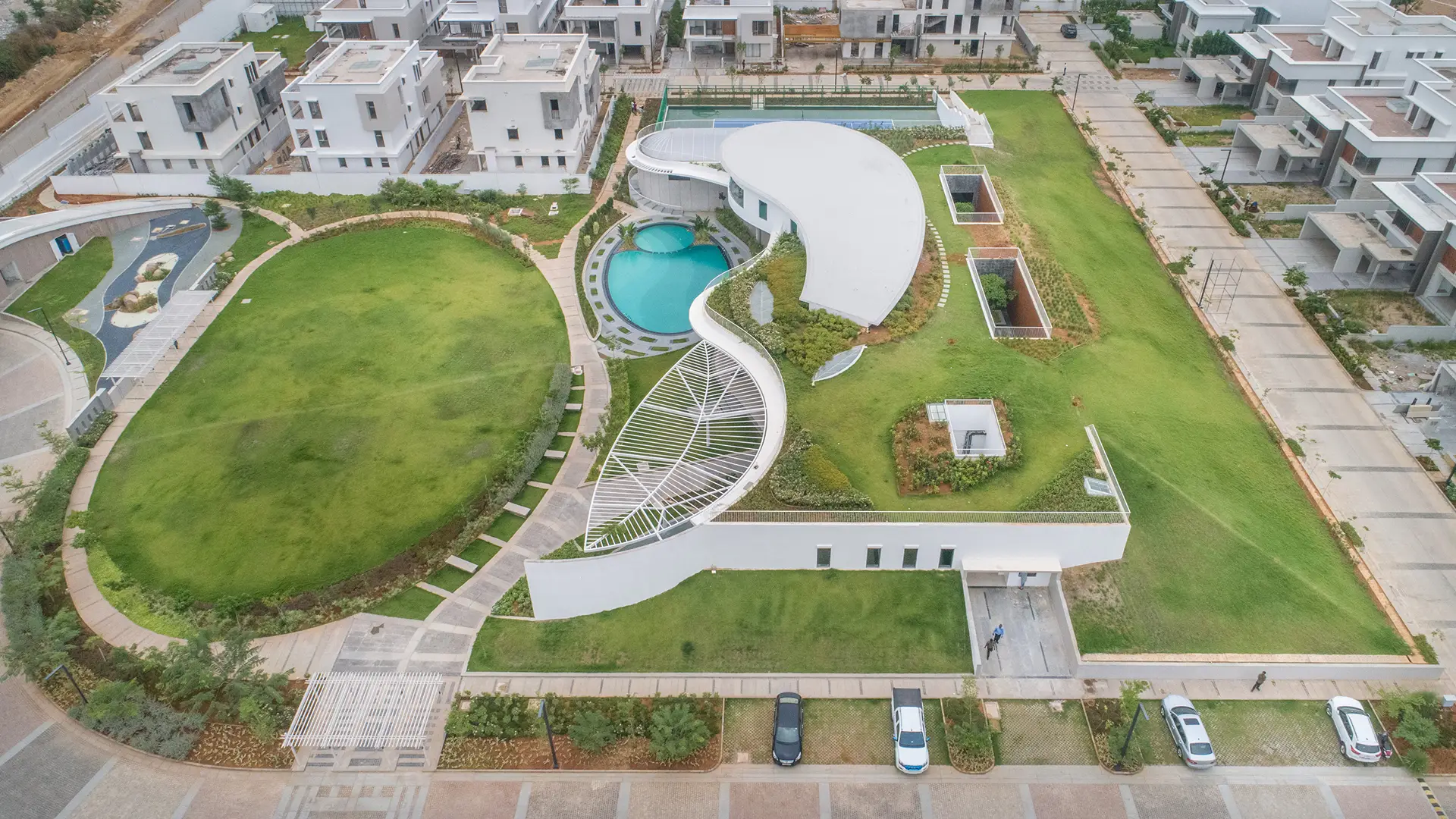 The Master Plan lays out a mosaic of plots, villas, tree lined boulevards, large and intimate landscaped zones, all hinged together by the central park. It is this central park that really traverses the site from the distant end to the central maidan and the club that rises from the ground. While the deep rooted idea of having each villa develop as pavilions around a courtyard with the proposition of having the villa set in the garden and the garden set in the villa. Over time, it turns out that the site too would respond to its immediate context as an urban courtyard within the neighbourhood - remaining true to its name and character.
