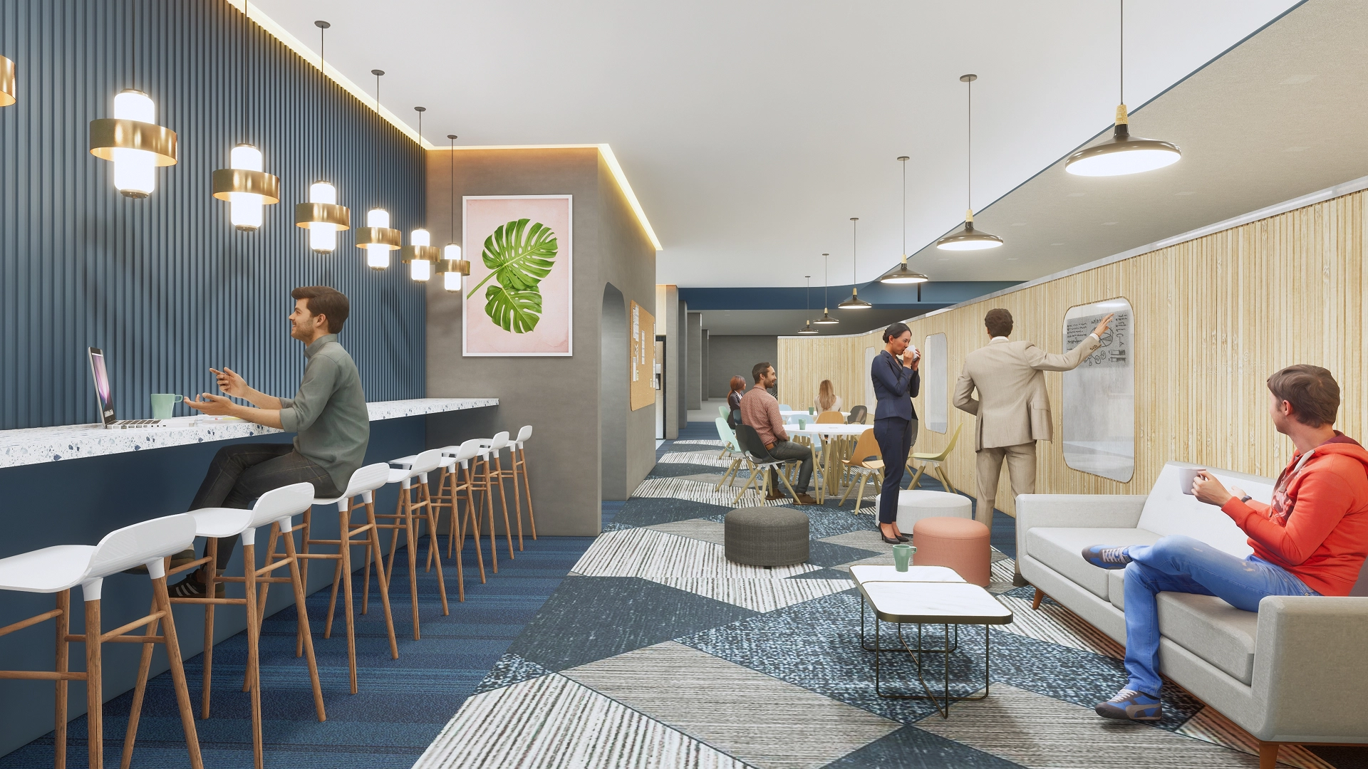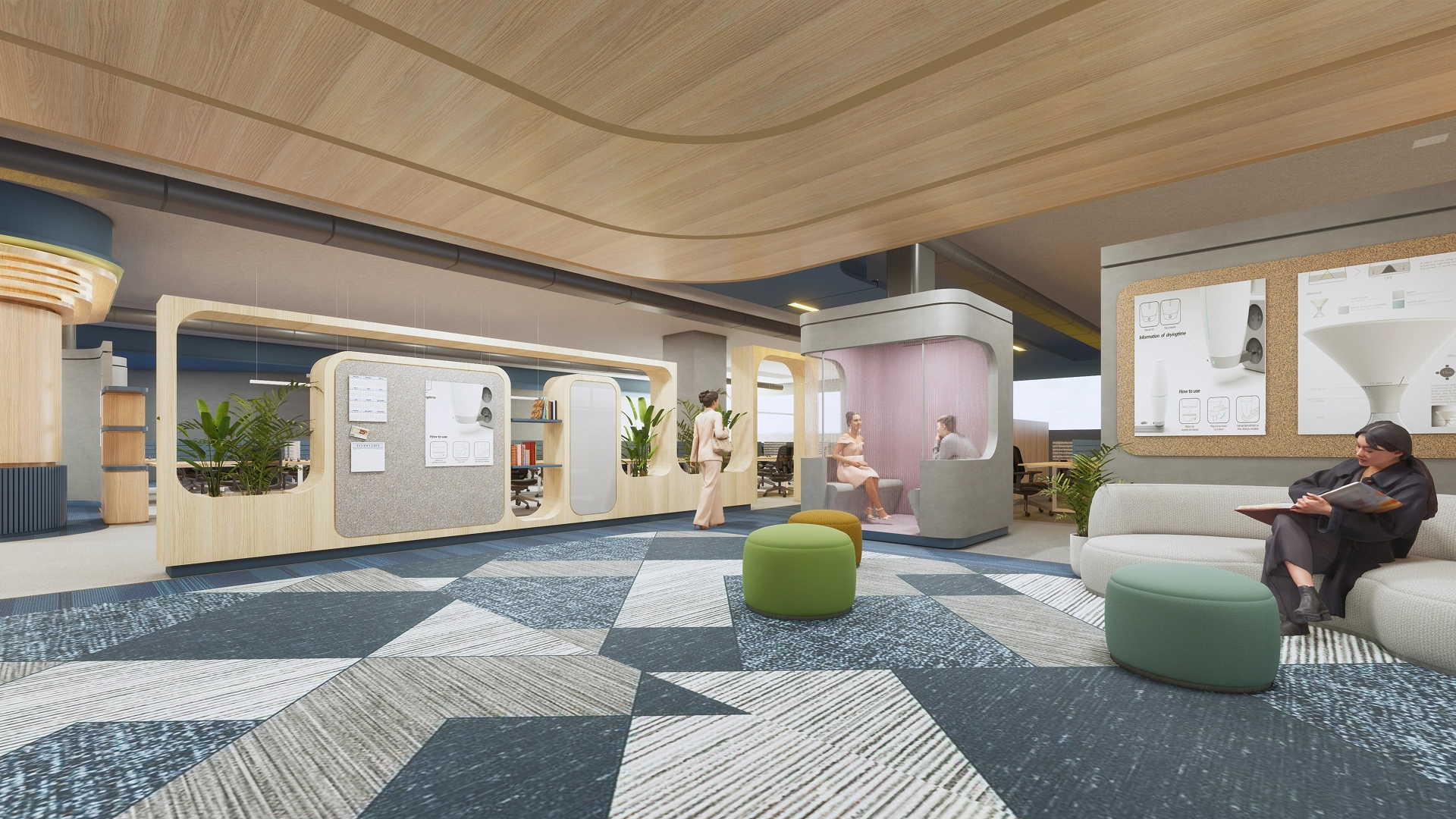 The increasing uncertainty, disruption, and pandemics have redefined the workplace, making it more than just a space for productivity. Today, the workplace must be a vibrant community of creators and producers, where collaboration and collective energy exceed individual contributions. The spatial design of the workplace reflects this vision, with layered planning to optimize flow and interaction. The concept of "thresholds" was introduced to distinguish between public spaces and the everyday movement of employees. The community threshold encompasses essential facilities, such as locker rooms, staff areas, and informal seating spaces that foster spontaneous conversations. Upon entering the facility through the reception, visitors are immersed in a journey that tells the story of Tata Elxsi. This narrative unfolds along the "Corridor of Stories," which leads to the Experience Centre. At the core of the space lies a central gathering area designed for social interactions, celebrations, and meetings. Surrounding this hub are supporting functions like the cafeteria and training rooms. The 'Wall of Collaboration' houses meeting and conference rooms, offering a dedicated space for team discussions. Throughout the workstation areas, known as neighbourhoods, multiple "Rendezvous Points" or "Chowks" are strategically placed to encourage serendipitous interactions, facilitating interdisciplinary collaboration. The primary circulation loop, known as 'The Thread,' connects the entire community, fostering seamless movement and interaction across the workplace.